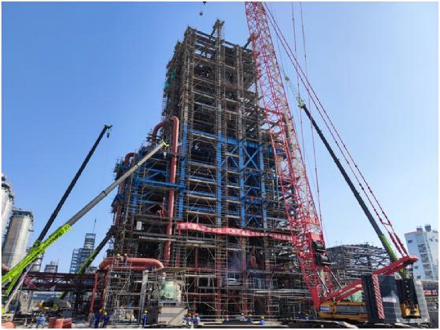 中南分公司寧波項(xiàng)目裝置主反應(yīng)框架順利封頂