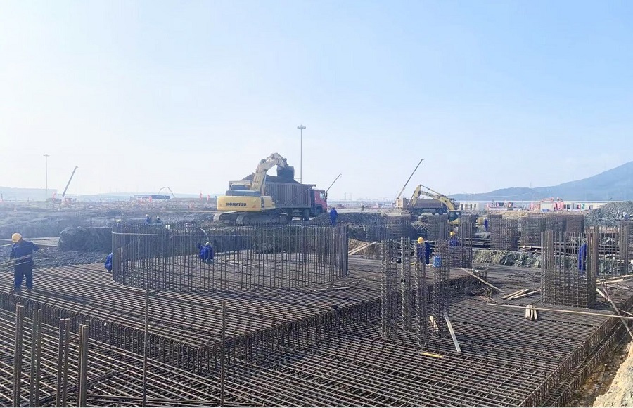該裝置項(xiàng)目共有7個(gè)單元,自8月15日開工以來,項(xiàng)目部克服工期時(shí)間緊、地質(zhì)巖石多、施工現(xiàn)場(chǎng)點(diǎn)多面廣、疫情防控難等諸多困難,全力搶抓進(jìn)度。截至目前,初期雨水池池壁鋼筋已綁扎完成,氧化提濃單元核心設(shè)備基礎(chǔ)承臺(tái)澆筑完成,精餾單元各框架基礎(chǔ)陸續(xù)施工,異丙苯單元大面積開挖,裝置變電所基礎(chǔ)柱、梁混凝土澆筑完成。項(xiàng)目部將充分利用好當(dāng)前晴好天氣,合理組織班組施工作業(yè),全力加快施工進(jìn)度,確保完成各項(xiàng)既定任務(wù),為黨的二十大勝利召開獻(xiàn)禮。