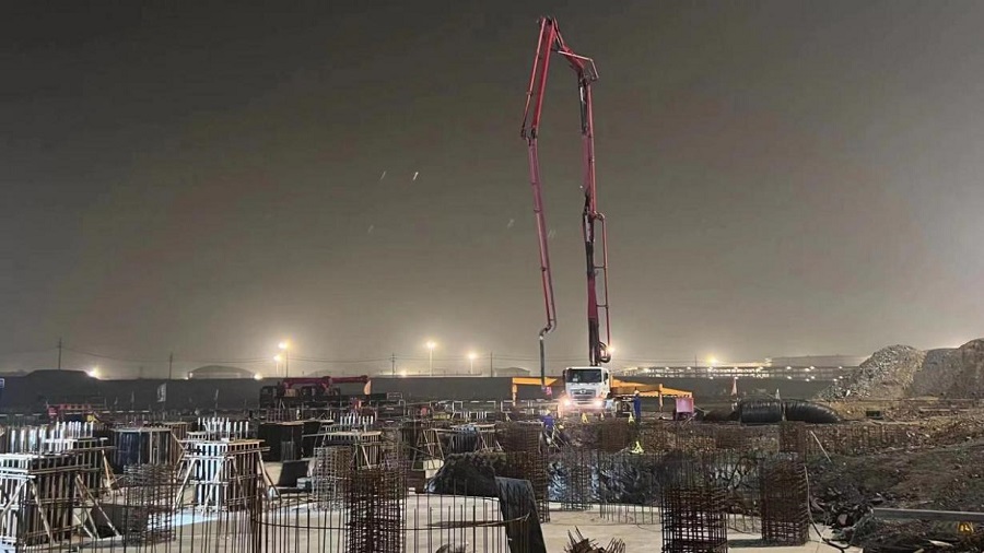在東北公司大連恒力苯酚丙酮裝置現(xiàn)場,施工人員爭分奪秒、連續(xù)奮戰(zhàn),現(xiàn)場加緊土建基礎(chǔ)和地管、防雷接地的施工,為后續(xù)安裝工程創(chuàng)造條件。其中異丙苯管廊混凝土于近日順利澆筑,為項目打好“大干90天”會戰(zhàn)夯實了基礎(chǔ)。
